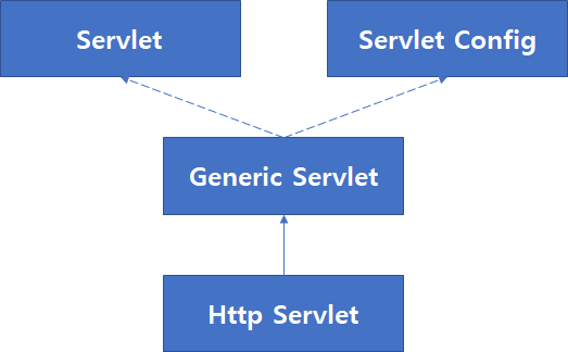 - Generic Servlet : 상위 두 가지 (Servlet , Servlet Config)인터페이스를구현하여일반적인 Servlet 기능 구현